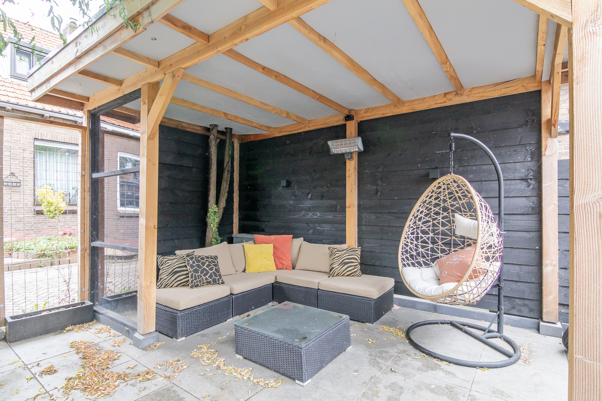 - Een grote houten berging aanwezig
