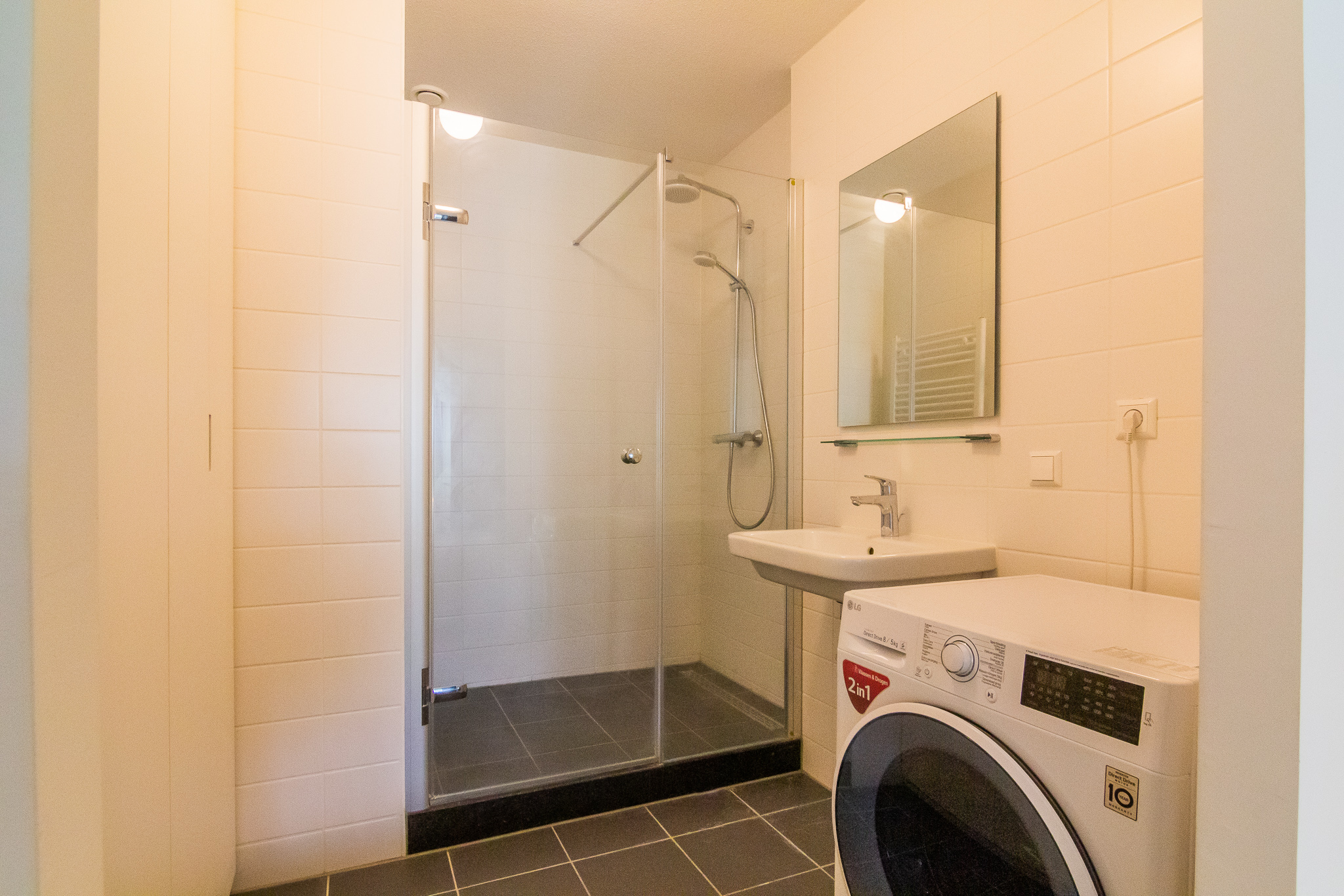 De luxe keuken is voorzien van een inductiekookplaat, koelkast met vriesvak, vaatwasser en voldoende kastruimte. Verder is de keuken volledig uitgerust met keukengerei, zoals potten, pannen, borden, etc. Het slaapgedeelte heeft een tweepersoonsbed, elegante nachtkastjes met conventionele lampen en voldoende kastruimte. De luxe badkamer is voorzien van een wastafel en inloop(regen)douche, een was-droogcombinatie en twee ruime kasten. Het luxe aparte toilet is voorzien van een fonteintje. Het appartement beschikt over een grote externe berging in de onderbouw.