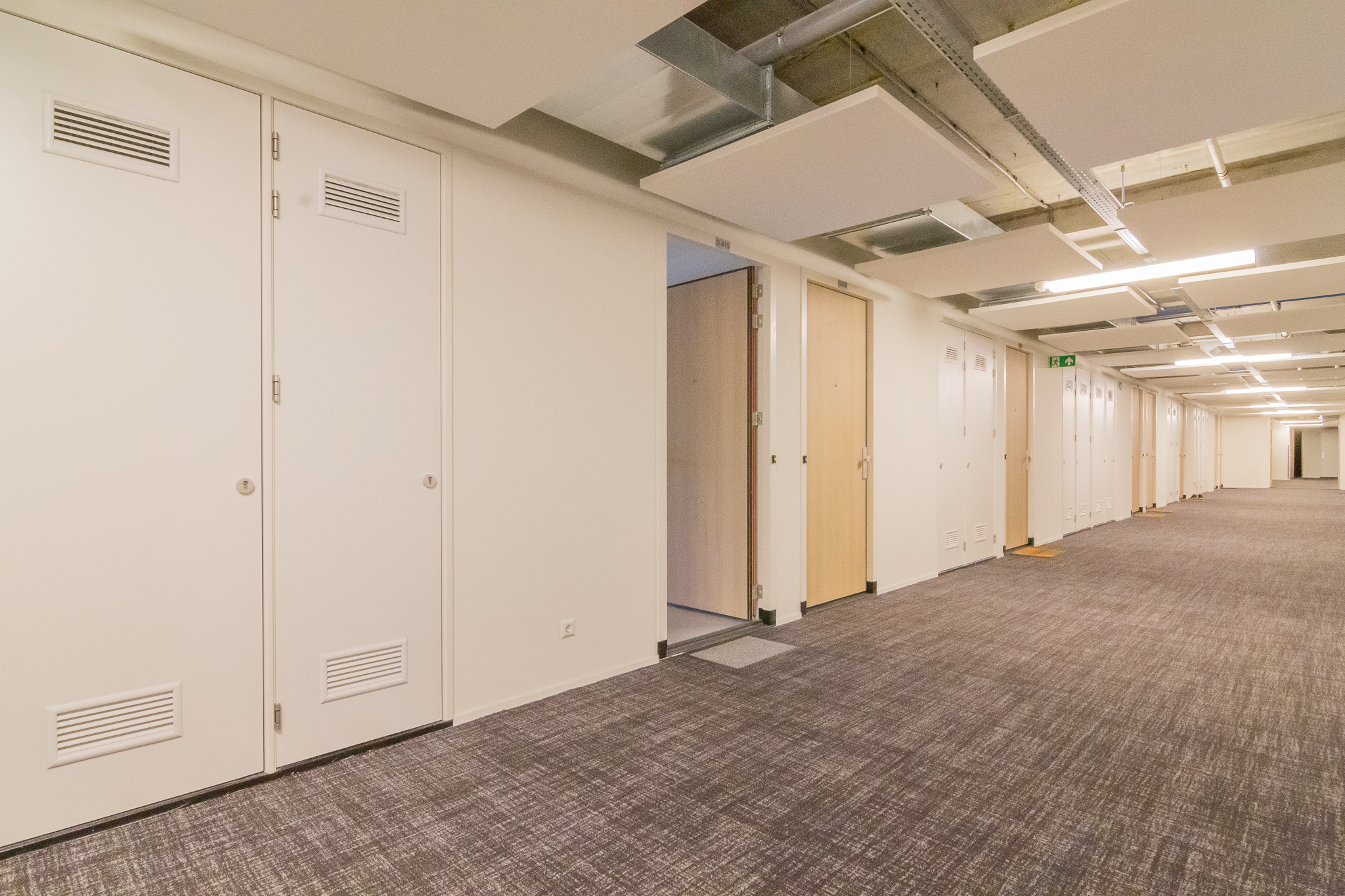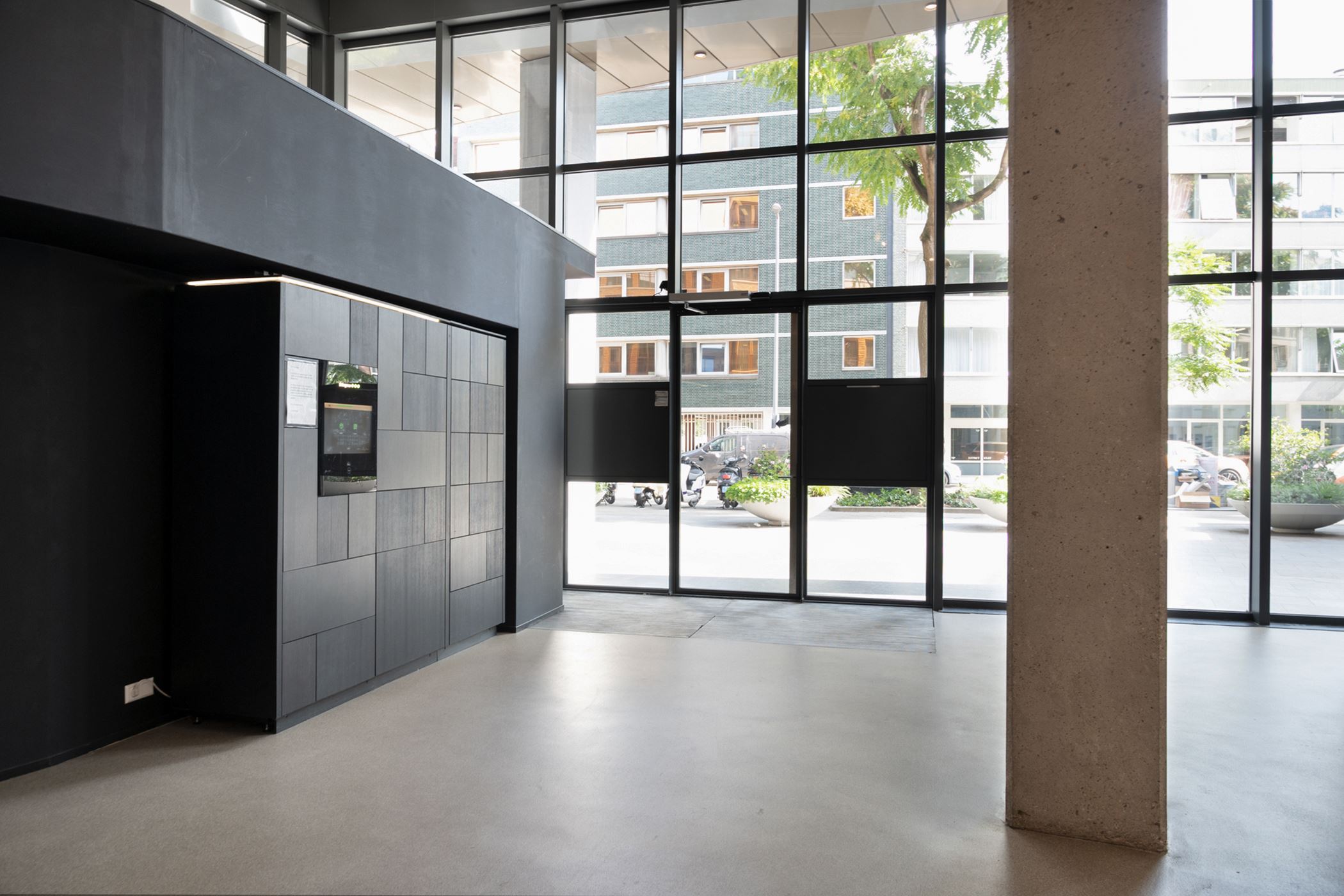 Begane grond; centrale entree met bellenplateau, intercom, brievenbussen, (handige) Bringme box en toegang tot de liften, bergingen, parkeergarage en fietsenstalling. 4e verdieping; zeer nette entree naar het appartement, daarna de entree/gang van de woning, gevolgd door het ruime slaapgedeelte, met aangrenzend de woonkamer met open keuken. Tevens is er direct toegang vanuit het slaapgedeelte naar de badkamer en vanuit de hal naar het aparte toilet. Het gehele appartement is voorzien van een hoogwaardige lichtgrijze gietvloer, is volledig geschilderd / gedecoreerd, gestoffeerd en wordt volledig gemeubileerd opgeleverd. Beide ramen aan de voorzijde (voorzien van elektrisch op afstand bedienbare screens) kunnen volledig worden geopend, waardoor 'buiten' naar binnen kan worden gehaald.