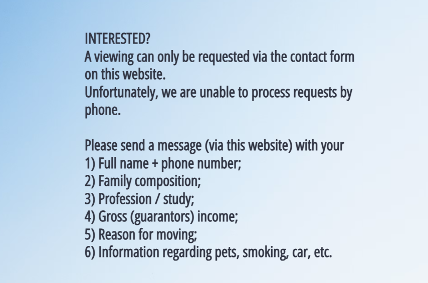 Mocht je meer willen weten over deze woning of een bezichtiging willen inplannen, neem dan contact op met ons kantoor via het aanvraagformulier bezichtiging van deze woningwebsite!